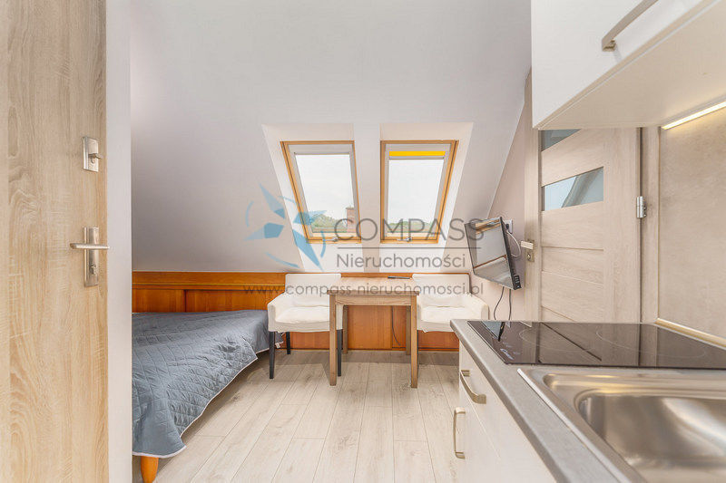 Niezależne apartamenty powstały w 2017 jest ich 5 o powierzchni : 29,29,20,19,17m2 - każdy samodzielny- ze swoim wejściem, swoją łazienką,kuchnią - jako idealna propozycja na gotowy biznes (obecnie są wynajmowane wczasowiczom przez profesjonalny portal zajmujący się najmem krótkoterminowym). Łącznie 8 pokoi.