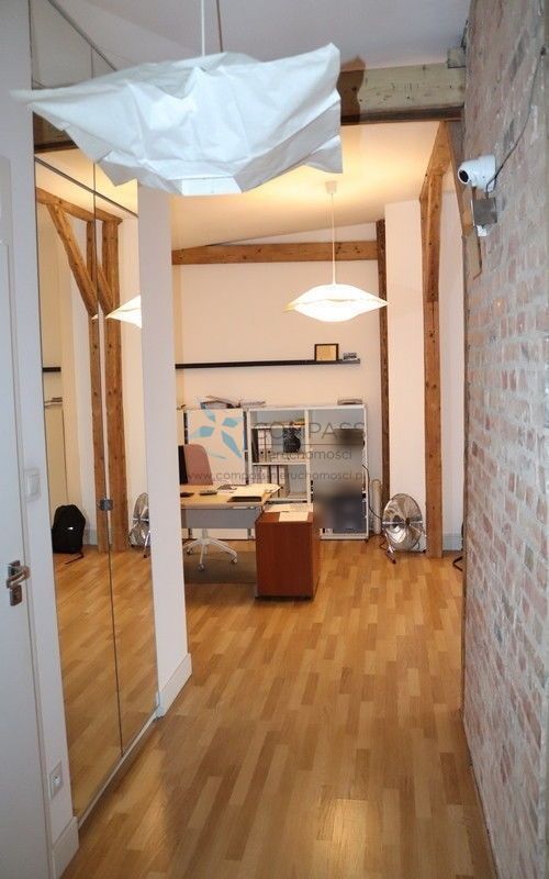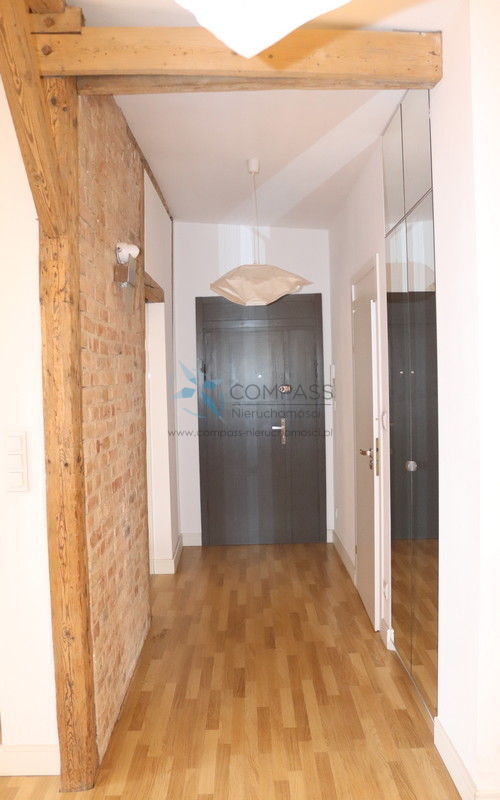 Jasne i przestronne mieszkanie z bardzo dużym potencjałem,z widocznymi oryginalnymi belkami drewnianymi,wysokimi sufitami , przeszkleniami, dużą łazienką,korytarzem,kuchnią z możliwością zmiany na 3-y lub 4-ry pokoje.