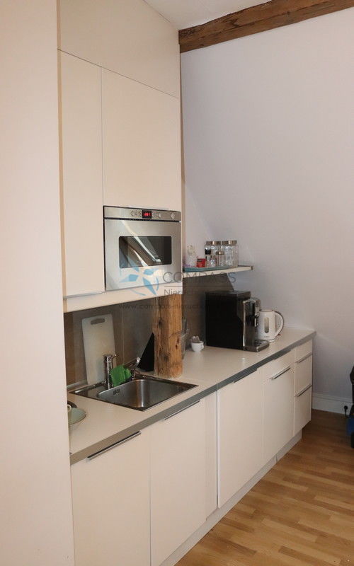 - duży przestronny pokój wys. ok.3,2m z umeblowanym i wyposażonym aneksem kuchennym razem ok.38m2 z naturalnie wydzielonymi strefami na: kuchnię ,jadalnię i cześć wypoczynkową .
