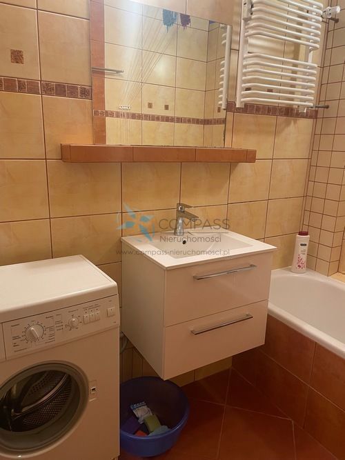 - łazienka z wanną i pralką